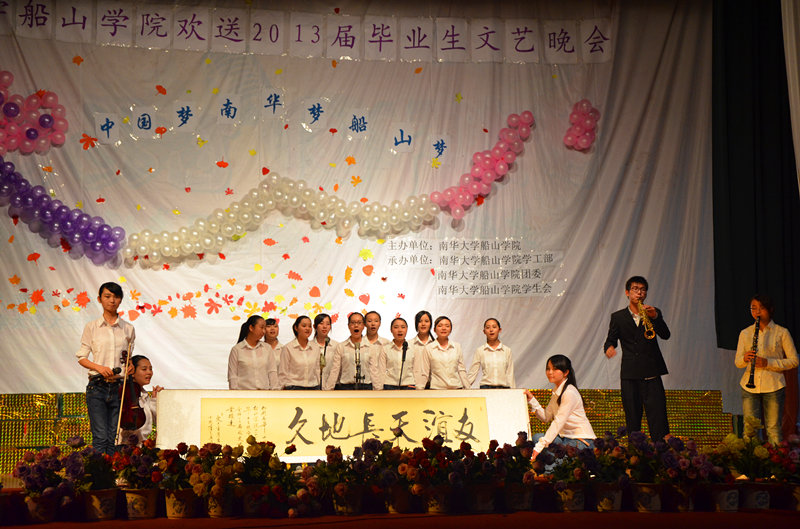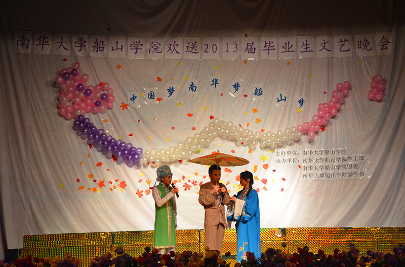 5月28日,伟德国际1946欢送2013届毕业生文艺晚会在南校大礼堂隆重举行。伟德国际victor1946正校级督导赵红老师、校学工部副部长黄建美老师、校团委副书记李海洋老师、数理学院党委书记肖基毅老师,以及伟德国际1946党委书记龙志坚老师、党委副书记邹正生老师、党委副书记唐康伟老师、副院长何啸峰老师、副院长樊华老师等院领导与学院全体铺导员老师出席了本次晚会,各兄弟学院团学代表与伟德国际1946优秀毕业生代表以及在我院校学子共同观看了本次晚会。 晚会开始前,伟德国际1946党委书记龙志坚老师上台发表了热情洋溢的致辞,他对伟德国际19462013届毕业生取得的硕果感到欣慰,祝愿船山学子满载知识,一路顺风,不断成长、成熟,最终走向成功,创造辉煌的人生。龙志坚书记对毕业生们提出四点殷切希望:第一,学会感恩,懂得感恩父母、学校、老师、朋友以及感恩学习生活的校园;第二,学会诚信,希望船山学子们步入社会后,能成为明礼诚信的高素质人才;第三,学会担当,敢于担当;第四,学会思考,要敢为人先、善于思考,以创新精神迎接时代、社会对我们的挑战。在伟德国际1946党委书记龙志坚老师铿锵有力的宣布晚会正式开始后,动感十足的开场舞《Fantastic baby》拉开了晚会的序幕。 整场晚会以“中国梦•南华梦•船山梦”为主题,分为“青葱岁月,梦的畅想”、“点亮激情,为梦扬帆”和“放飞青春,乘梦起航”三个篇章,内容丰富,精彩纷呈。《友谊天长地久》以优美旋律掀起了全场的第一个大合唱,随着“友谊天长地久”的书法卷轴徐徐拉开,“友谊”二字显得格外厚重;而弘扬王船山精神,彰显“民族至上,经世致用,造化日新”的船山精神的话剧《王船山》作为本次晚会的一大亮点,高潮迭起,引起了全场观众的共鸣;点燃全场激情的乐队表演《红日》、体现传统民族气息的优美舞蹈《茉莉花开》等节目将整场晚会的气氛推向了一个又一个的高潮,着实让观众享受了一场视觉与听觉得盛宴,赢得了全场观众们的热烈的掌声。最后,晚会在温馨的《毕业生情歌联唱》的动人的歌声中缓缓落下帷幕。 同窗数载少年情长,望征程千种思绪。告别充实的大学,走向人生的殿堂,毕业又是人生的一个新起点。虽然即将离校,身为船山人的毕业生们必当不忘“六经责我开生面,七尺从天乞活埋。”的誓言,秉承“刚健自强,敢为人先”的南华精神,为创造一个更好的明天而拼搏!本场文艺晚会别出心裁、独具匠心,不仅给船山学子提供了一个展现个人魅力的舞台,更体现了大家对我院即将毕业的学子们的美好祝愿。