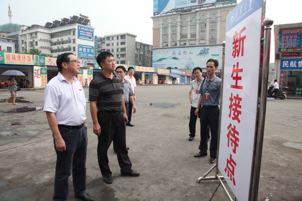 最后,邹书记肯定了此次迎新工作,并指出坚持以人为本的办学方式,不断创新教育教学与学生管理模式,倾听学生心声,收集学生意见,及时解决学生所反映的问题;不断加强消防安全与校园周边环境建设,着力打造平安校园、和谐校园;并对新生寄予几点希望,在今后的学习生活中要充分利用各种资源与条件,牢记使命,努力学习,奋发成才,坚持“明德博学、求是致远”的南华校训,弘扬“勤勉务实、甘于奉献、刚健自强、敢为人先”的南华精神,作出色的南华人,以实际行动向党的十八大献礼。