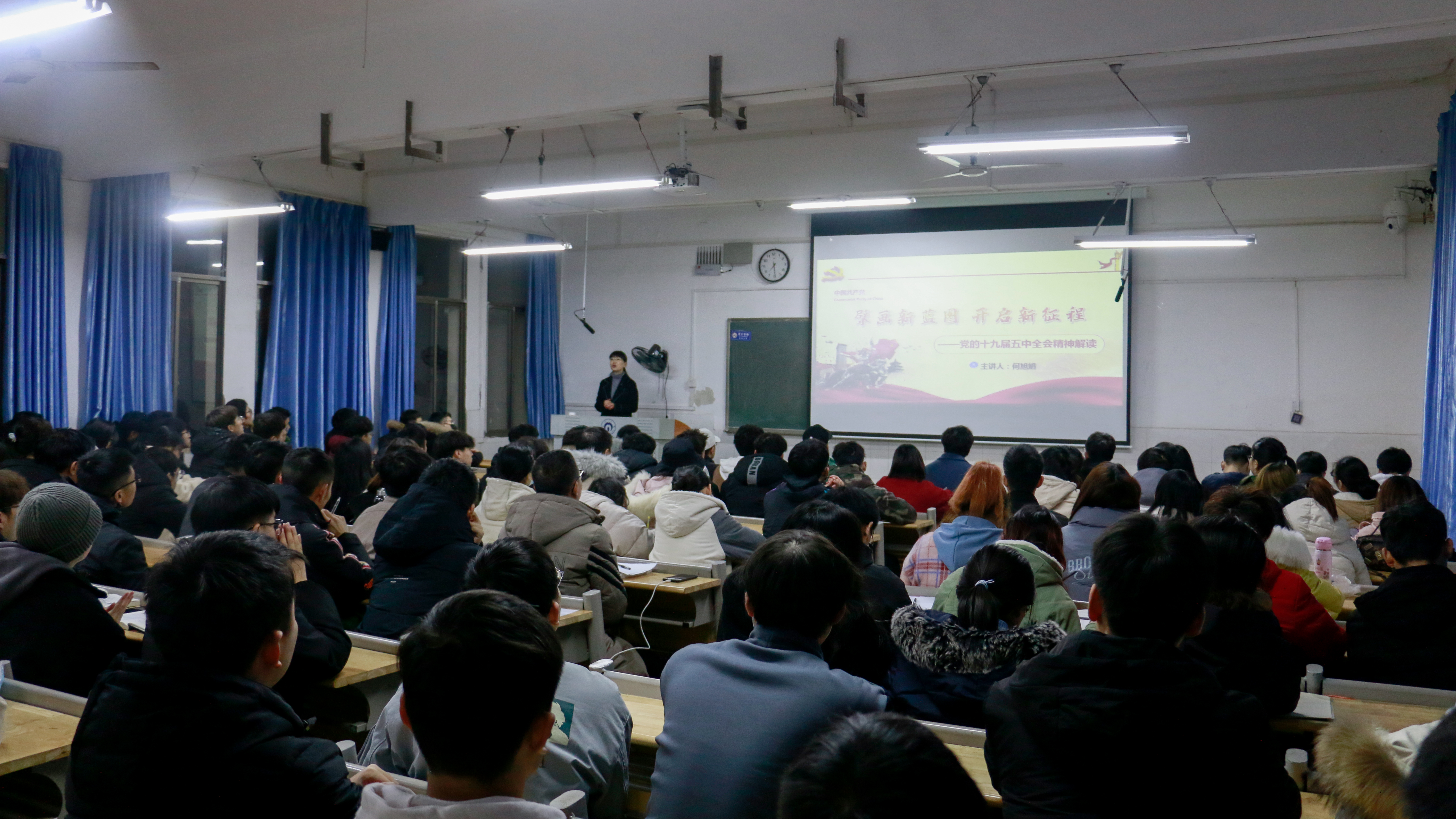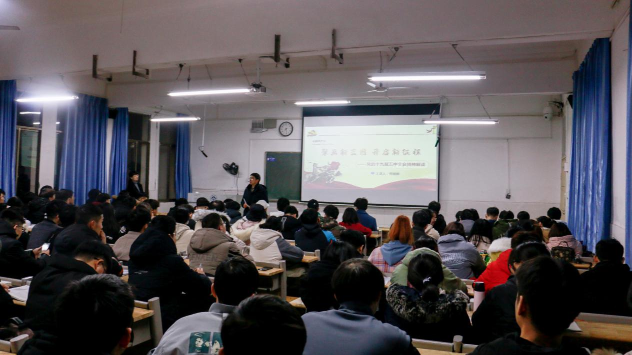 此次报告会分为党的十九届五中全会召开的背景、党的十九届五中全会公报主要内容、开启全面建设社会主义现代化国家新征程三个部分。