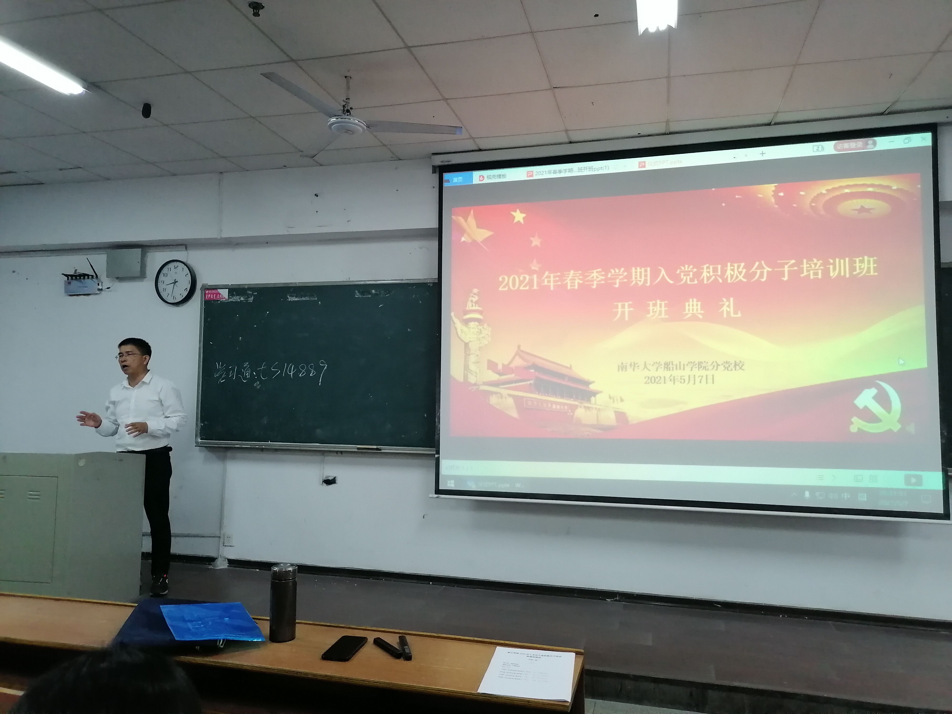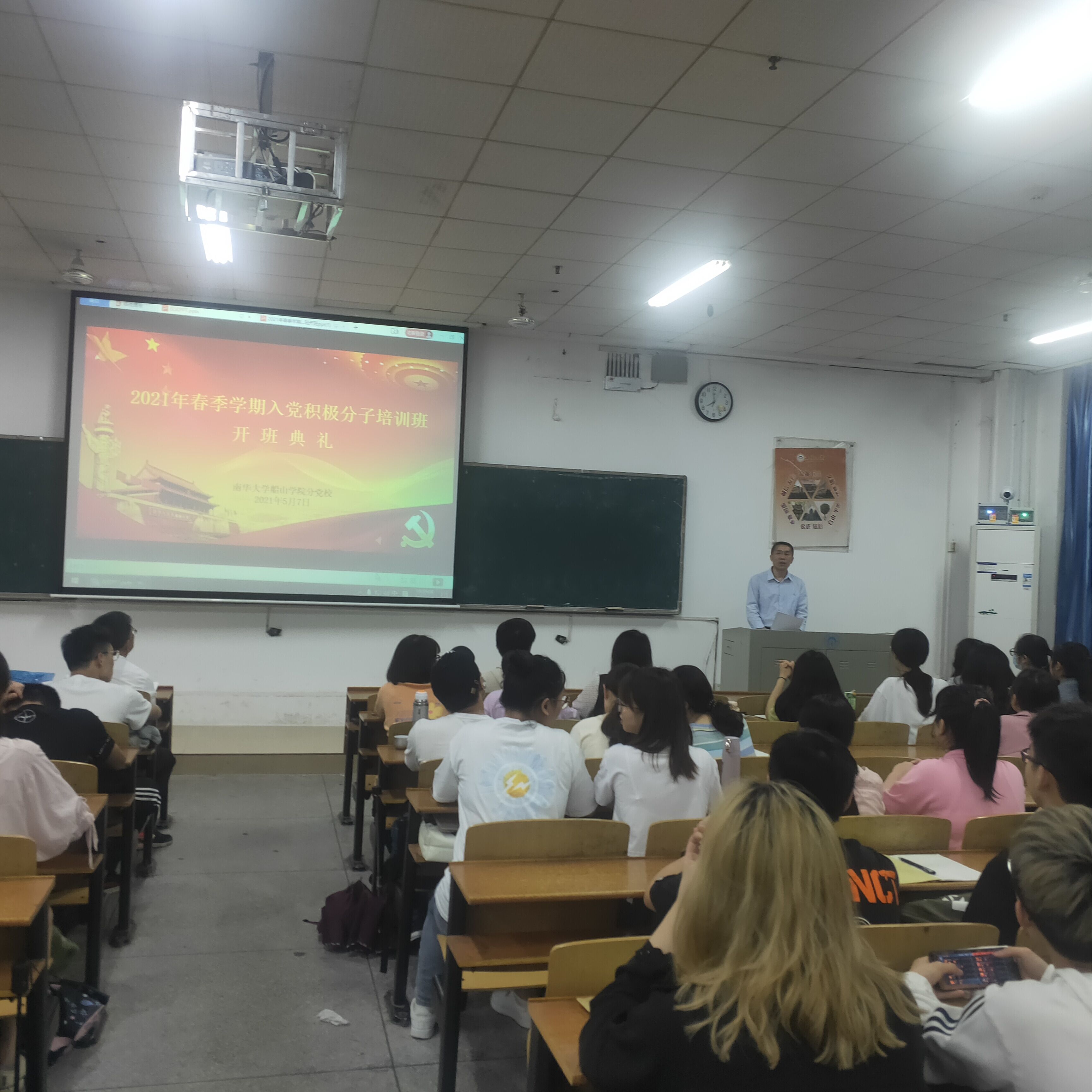 伴随着庄严雄伟的国歌的奏响,开学典礼拉开帷幕。首先由江娴老师宣读培训班的有关制度及编班情况。阳剑兰老师作了动员讲话,阳剑兰老师对各位学员表示了热烈的祝贺,指出在建党100周年之际,开展入党积极分子培训班有着重要意义。并对学员们提出了要求:一是要深刻理解和把握培训的意义和目的,解决为什么要培训的问题。对入党积极分子进行培训,是《党章》和《发展党员工作细则》的规定,是赋予基层党委的一项重要工作任务,也是党员发展的必要程序。学员们通过集中培训,了解和掌握中国共产党的性质、宗旨、指导思想等基本知识,深刻理解党的十九大精神和习近平新时代中国特色社会主义思想,坚定为共产主义事业奋斗终身的信念。二是要以良好的态度和学风参加本次培训,解决好培训的思想和动机问题。要把参加这次培训作为一次思想认识、理论水平和政治素质提高的机会,通过参加培训,提高思想认识,深化入党的愿望,纯正入党动机,改进自身缺点和不足,提高自身素质和能力。三是要严格按照要求完成各环节培训任务,解决如何培训效果好的问题。培训班时间紧,内容多,任务重,要求学员要遵守培训纪律,一定要处理好培训与专业学习的关系,党的知识要培训好,专业知识学习也不能落下。要做好信息沟通,保持好信息畅通,班级负责人和组长要传达好信息,组织好各项教学活动,确保培训各环节有序开展。
