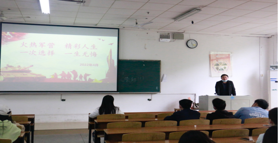 然后,学院征兵工作专干何霖老师详细介绍了大学生参军入伍的意义,国家、地方和伟德国际victor1946对入伍大学生的激励政策,报名条件和流程;鼓励符合条件的毕业生积极申报直招士官,并介绍了直招士官的报考条件及流程。