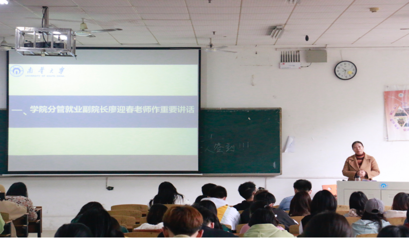 最后,主持人旷思佳老师在大会总结中希望毕业生按照各位老师的要求,及早行动,做好准备,顺利就业。