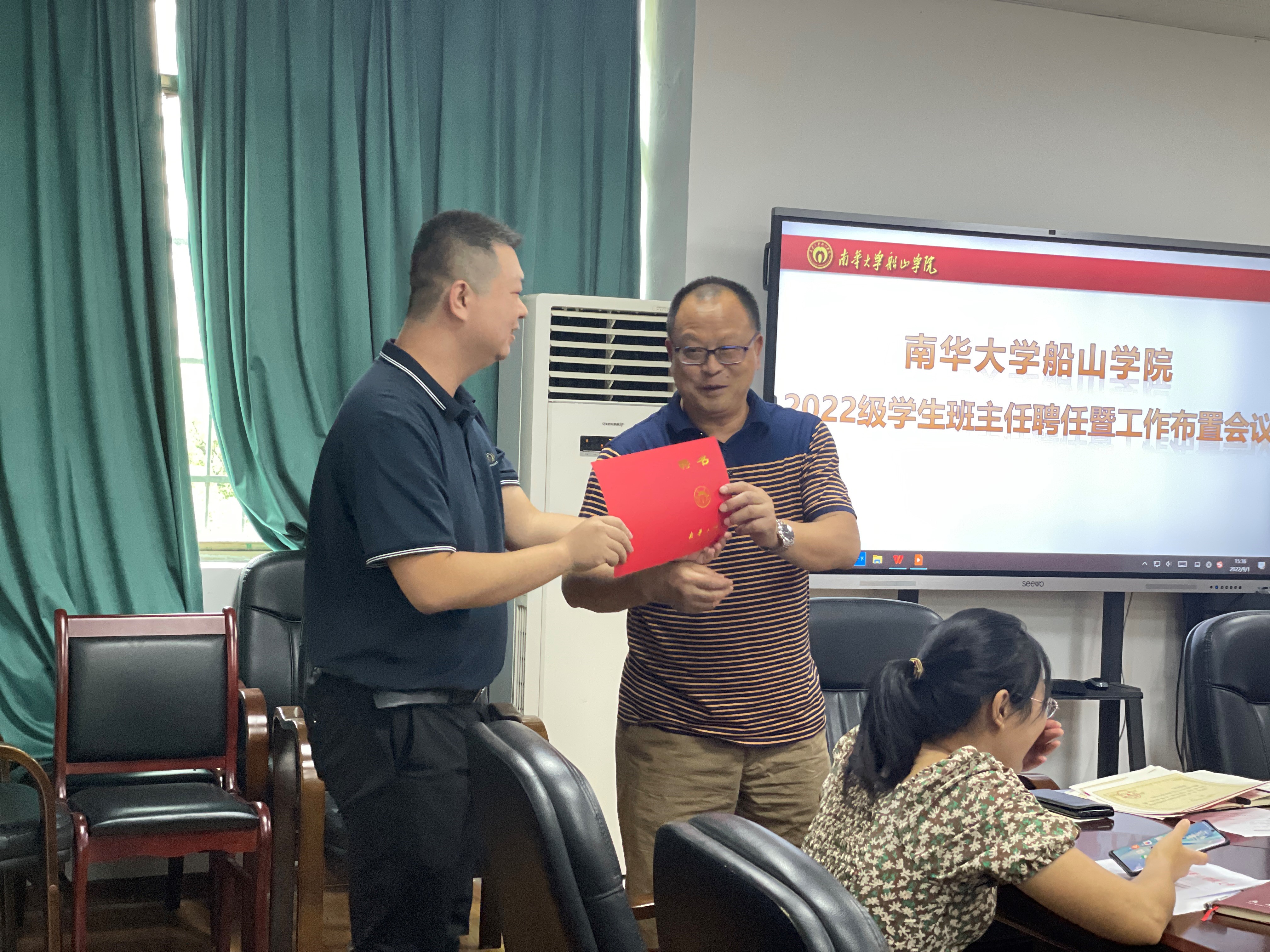 会上,周英老师宣读《关于聘任廖迎春等18位同志为伟德国际19462022级学生班主任的通知》。伟德国际1946院长曾庆生给2022级18位班主任颁发了聘书。 2022级学工室主任旷思佳老师就近期班主任主要工作进行了安排。