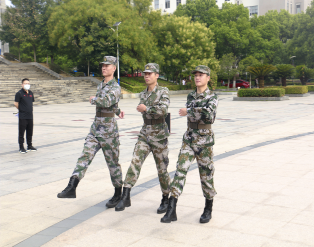 动员会上,军训教官为全体新生表演了队列动作,教官们的标准动作获得同学们的一阵阵掌声。本次施教的教官们在暑假冒着高温酷暑进行严格的训练,为本次高质量军训打下了良好的基础。
