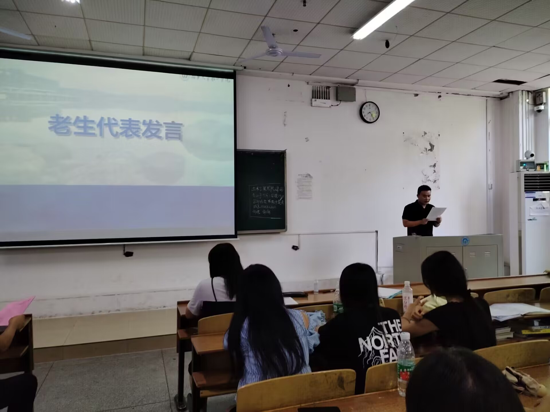 会议在慷慨激昻的国歌声中拉开序幕。会议第一阶段开学典礼,2024级新生代表陈艳同学发言,她代表24级新生向与会领导老师问好与感谢,她表达了对加入南华大家庭的荣幸,畅想未来本科阶段的学习及生活。2023级王诚坚同学代表老生发言,他向新生们的到来表示欢迎,回顾一年来在学院的感想,希望学弟学妹要以更高的目标要求自己,书写砥砺人生。