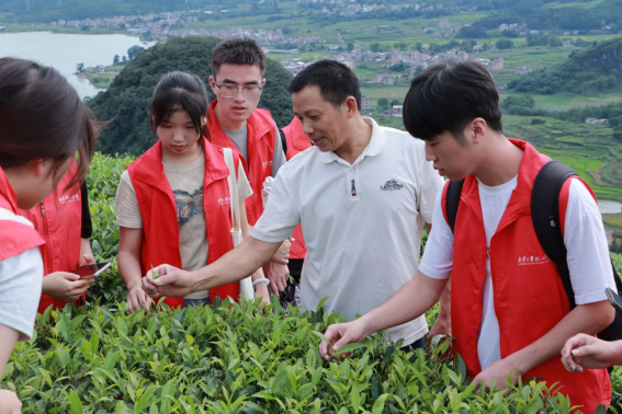 生生不息,薪火相传。7月9日,伟德国际1946团队围绕水口人文特色调研,学习瑶族特色长鼓舞,了解当地长鼓舞的文化传承方式,学会了如何去保护、弘扬优秀传统文化,加深了对长鼓舞文化的发扬决心和对瑶族人民的喜爱。他们用自己的身体语言讲述着故事、传递着情感、表达着对美好生活的向往和追求,感受瑶族人民对生活的热爱和乐观向上的精神风貌。同时对当地花海项目与茶叶基地进行,与工作人员通过对话采访直观感受农旅融合的发展方式。并进行记录。
