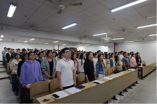 培训班班主任周英老师主持开班仪式,并向学员介绍参加典礼的老师,随后全体成员起立奏唱国歌,开班仪式由此拉开帷幕,同学们目光炯炯,充满了许党报国的期待。凌瑞瑜老师宣读了本期培训班编班情况、教学计划、学习要求和学习纪律。本次培训班将按照集中授课、专题讨论、观看党课视频、社会实践、撰写心得体会、闭卷考试等环节进行。