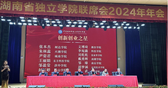 年会中,各独立学院的院长、书记和参会人员进行了分组讨论,就学习贯彻党的二十届三中全会及全国教育大会精神、落实立德树人根本任务、如何加强独立学院之间信息交流资源共享、研讨独立学院创新发展等方面进行了充分的交流和探讨。会议还对评选出的湖南省首届独立学院“优秀管理工作者”“优秀辅导员”和“创新创业之星”进行了表彰。我院唐慧老师被评为“优秀管理工作者”,褚书来老师老师和华振尧老师被评为“优秀辅导员”,2021级药学专业封玉婷同学被评为“创新创业之星”。