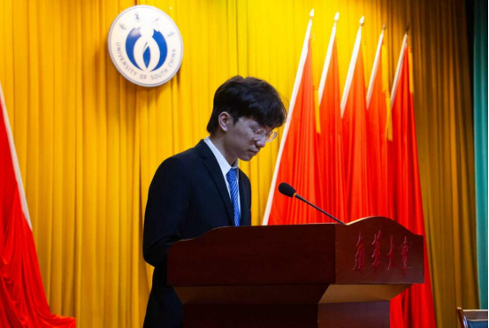新生代表周小添表达了对大学生活的憧憬与决心,展现出从中学到大学的转变与成熟。他相信在大学这个新起点上,一定能书写属于自己的精彩篇章。