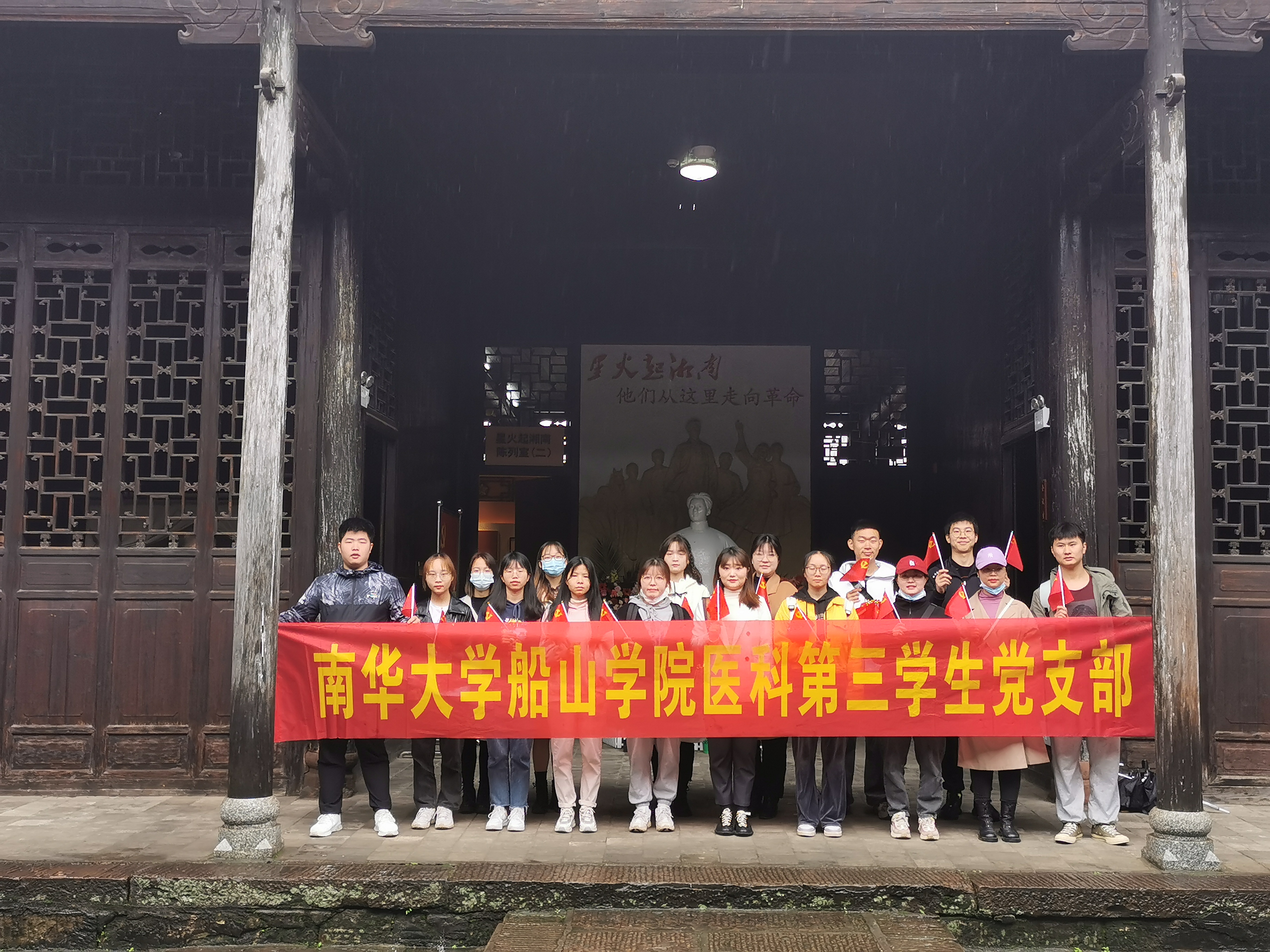 为庆祝中国共产党成立100周年,深入学习贯彻习近平总书记在党史学习教育动员大会的重要讲话精神,激励党员坚定理想信念,增强党性,汲取前进的力量,伟德国际1946医科第二学生党支部和医科第三学生党支部前往湘南学社联旧址开展“学史增信”主题党日活动。