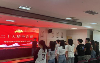 在宣讲会上,永州见习队党小组学生党员段卓祚同志提到,要深刻领会习近平总书记提出的“青年兴则国家兴,青年强则国家强。青年一代有理想、有本领、有担当,国家就有前途,民族就有希望”的要求,认为“历史只会眷顾坚定者、奋进者、搏击者,而不会等待犹豫者、懈怠者、畏难者。”表示“在实践中要以身作则,严格规范言行,积极响应党中央的号召,认真学习、深刻领会和切实践行党的二十大精神。以党的二十大精神为契机,进一步增强了自身的政治意识和责任意识,把思想和行动统一到党的二十大精神上来,提高政治站位,努力学习,为推进医学事业的发展贡献自己的力量。”