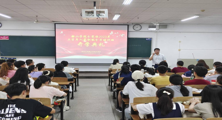 典礼在庄严的国歌声中隆重拉开帷幕,全场奏唱国歌。江娴老师宣读分党校培训班的有关制度和编班情况后,阳剑兰老师作动员讲话。
