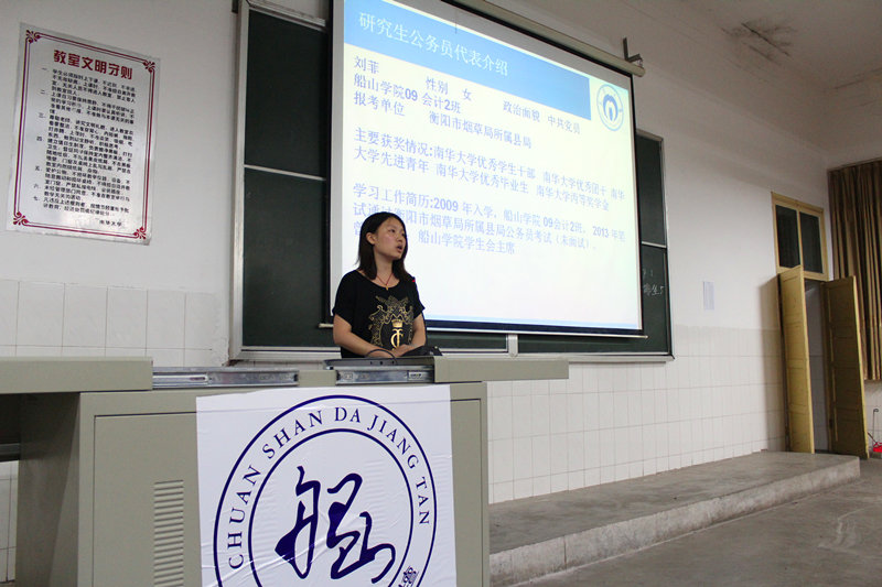 为了让同学们了解考研考公务员的有关知识,有针对性地投入到学习中去,6月7日,伟德国际1946在2教225教室举办了以“传承经典 筹划未来“为主题的考研考公务员经验交流会。伟德国际1946副院长何啸峰老师,院团委书记李国华老师出席了交流会,船山学子都很珍惜这次难得的机会,前来“取经”。