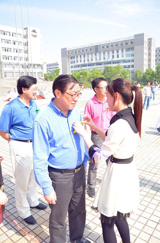 伟德国际1946的同学为邹书记系上彩色的丝带