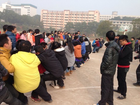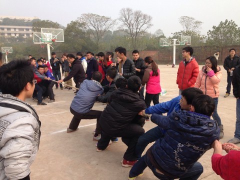 2013年12月21日(星期六)上午,拔河比赛在伟德国际victor1946雨母校区老篮球场正式开始。参加本次比赛的学院共有八个,每个学院选出男女混合代表队,每个学院均有同学到场观看比赛,并为选手们加油、鼓劲。