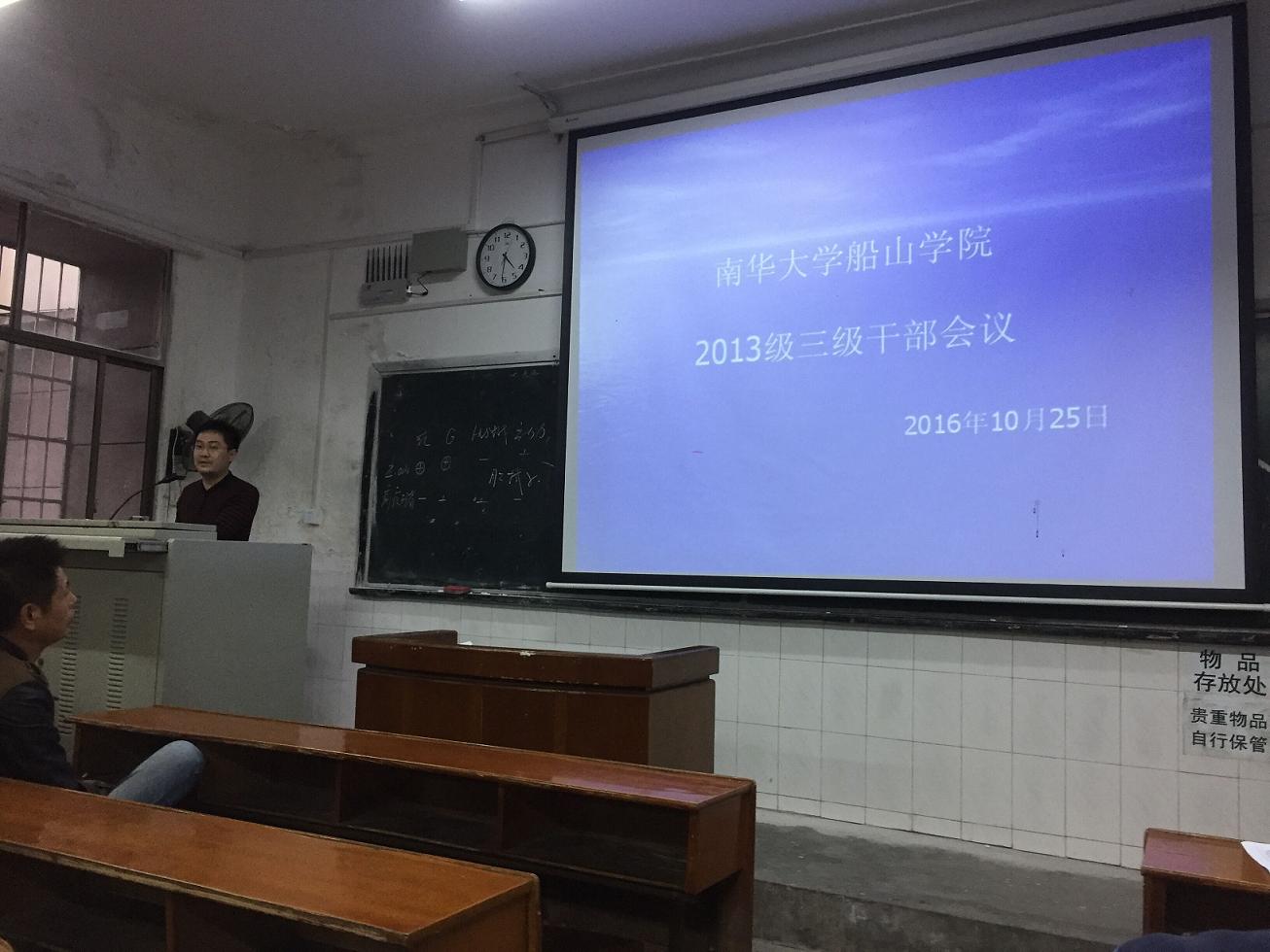 2016年10月25日下午4:30,伟德国际19462013级三级干部会议在伟德国际victor1946第二教学楼105教室顺利召开。伟德国际194613级学工办李海涛老师、肖唯华老师、张力老师、何鹏老师出席了此次会议。13级学生党支部、自管委干部及各班班长、团支书参与了会议。会议由2013级学工办负责人李海涛老师主持。
