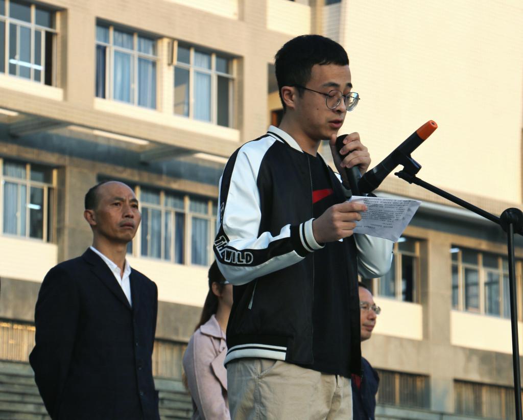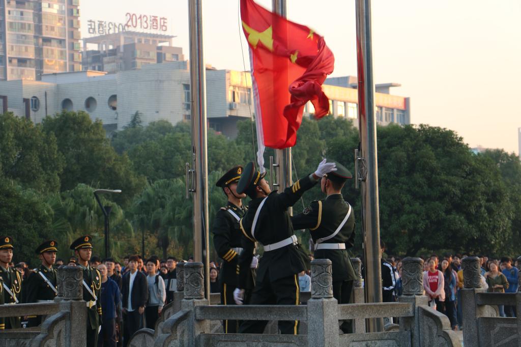 本次升旗仪式分四项进行。第一项,升国旗,奏国歌,行注目礼。李庆老师宣布升旗仪式开始后,国旗班的旗手迈着庄严而整齐的步伐走到旗台下。“升国旗,奏国歌,行注目礼”伴随着庄严嘹亮的国歌,五星红旗冉冉升起,全体师生怀着崇敬的心情,凝视着迎风飘扬的五星红旗,心中无比自豪。随后,校歌响起,升旗手迎着初升的太阳缓缓升起校旗。第二项,由16级学生代表土木二班王野同学做主题为“改革铸就辉煌,奋斗实现梦想”国旗下的演讲,字里行间表达了出了对祖国的热爱之情,以及船山学子通过勤于学习,积累知识来实现理想的决心。仪式第三项,由15级环艺一班肖与轩同学代表全体学生进行“甲子相传,我辈自强”主题的国旗下演讲。演讲中回顾了伟德国际victor194660周年的历史,表达了对母校的热爱及祝愿,同时也让我院学生领悟到一分耕耘,一分收获之定理。