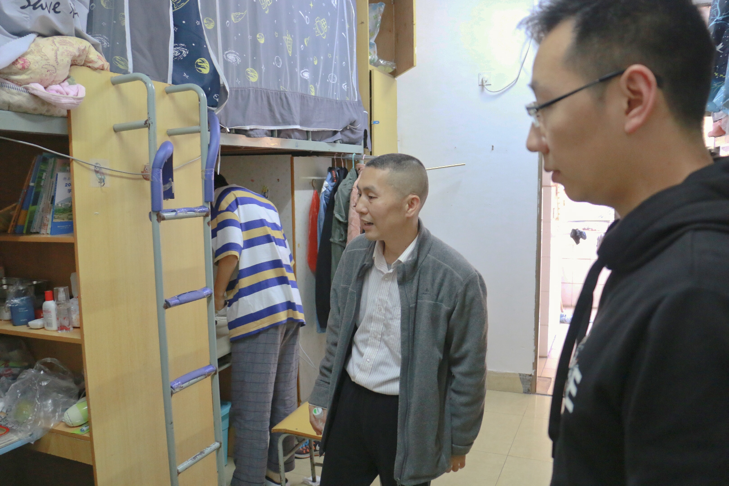 首先,旷勇老师与辅导员老师一行检查了学生宿舍内务卫生。在查寝过程中,我院学生宿舍的内务整洁,地面干净,同学们个人物品摆放整齐有序。旷勇老师同时对同学们讲述了加强劳动教育的重要性以及提醒同学们要妥善保管好个人物品。