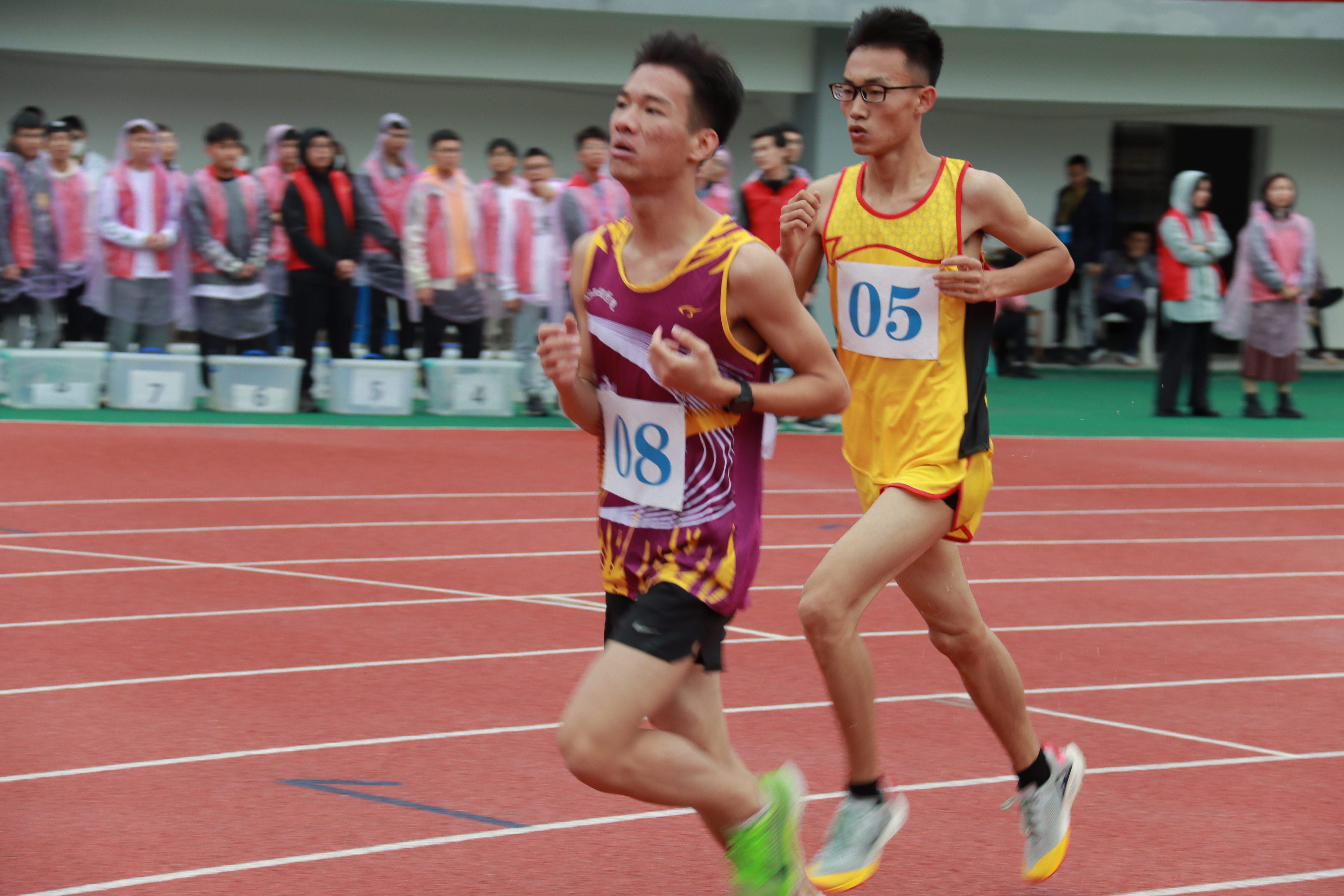 乌云掩着烈日,秋风夹着绵雨,有人瑟瑟发抖,有人却在风雨中疾行;五千米,有人闻之色变,有人却热血沸腾。我院的苏天煜、李海林、刘雯婧、李慧姣同学,他们是真正的勇士,不畏这五千米的枯燥,享受着不断超越的快感。他们可能分不清脸庞滑落的是汗水还是雨水,却明白心里那种由衷的快乐,能够从心里驱散四肢百骸的酸麻,一步步迈向终点。