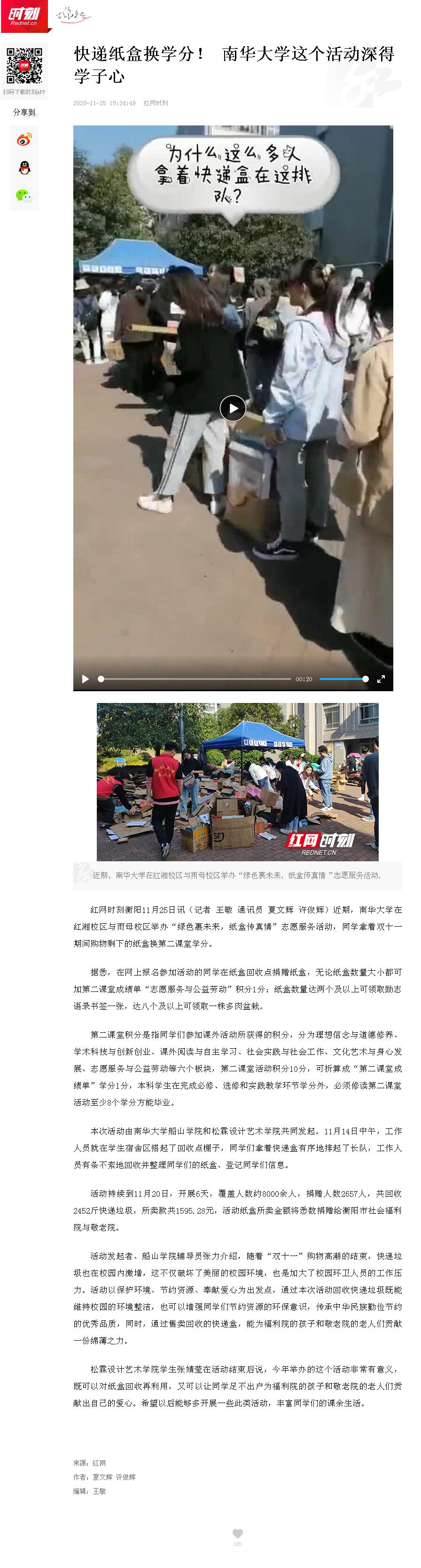 【红网时刻】快递纸盒换学分! 伟德国际victor1946这个活动深得学子心