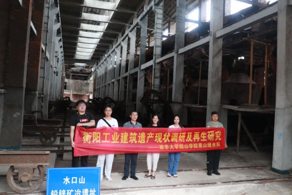 水口山有色金属集团有限公司位于常宁市松柏镇,是集有色金属采矿、选矿、冶炼、加工、贸易于一体的国家级大型国有企业。水口山是驰名中外的铅锌之都,最早开采于宋朝,正式建矿于1896年,享有"世界铅都"、"中国铅锌工业的摇篮"之美誉。在工作人员的带领下,团队成员认真参观了弃用厂区建筑遗产和内部设施,详细了解了厂区的发展历史和为国家建设做出的重要贡献,先辈劳动人民的奉献精神给队员们留下了深刻的印象。同时,团队成员根据弃用厂区建筑的功能特点,就厂区的功能再造及价值提升提出了一些中肯的意见和建议。