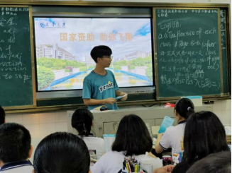 图2 唐浩、普凡同学在衡阳市六中进行资助政策宣讲