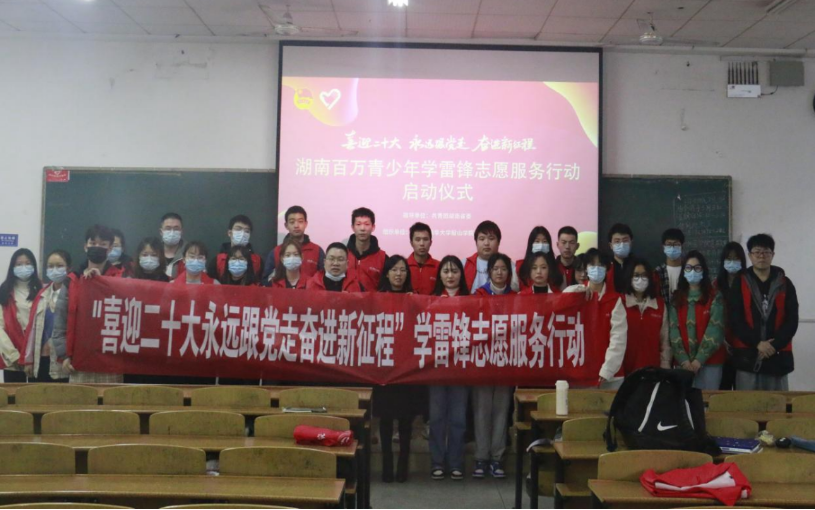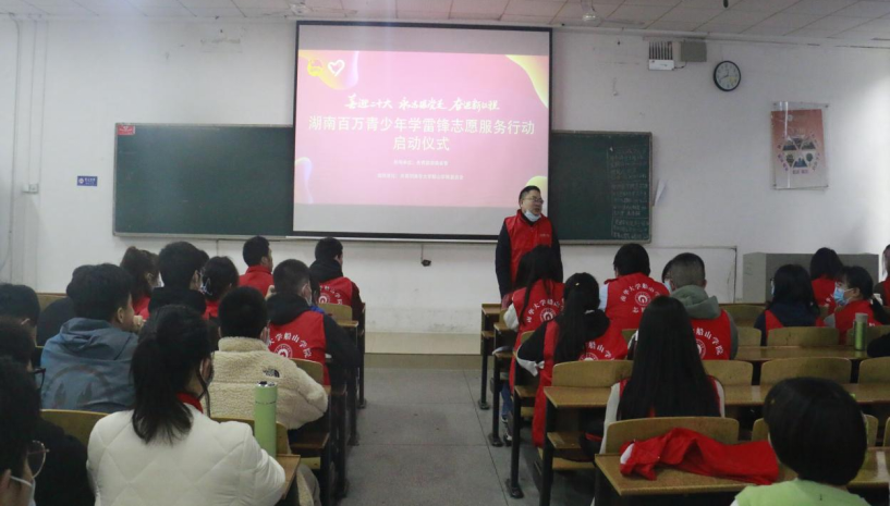 为贯彻落实共青团湖南省委,关于深化实施“雷锋家乡学雷锋”百万青少年志愿服务行动的方案,动员和引导我院团员青年和志愿者深入学习雷锋精神,以实际行动喜迎党的二十大和庆祝建团100周年,积极号召广大志愿者参与到行动中来。2022年3月4日12时30分,我院“喜迎二十大永远跟党走奋进新征程”学雷锋志愿服务活动启动仪式在伟德国际victor1946第一教学楼112教室隆重举行。院党委副书记刘期彪老师,院学生工作办主任周英老师,院团委书记旷思佳老师以及各班学生志愿者代表参加本次大会。本次会议由院团委副书记冯姝贻主持。