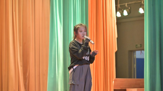 吕文琴同学演唱流行歌曲《年轮》,用歌声回望过去,展望未来