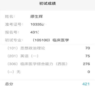2022年3月26日,浙大研招办的老师打电话通知缪生辉他被拟录取了,电话这头的他激动的语无伦次,直到电话挂了他还不太敢相信。他赶紧打开网站查询,看到页面写着:缪生辉,浙大重症医学,拟录取,他才真正意识到,考研这一战,他赢了。
