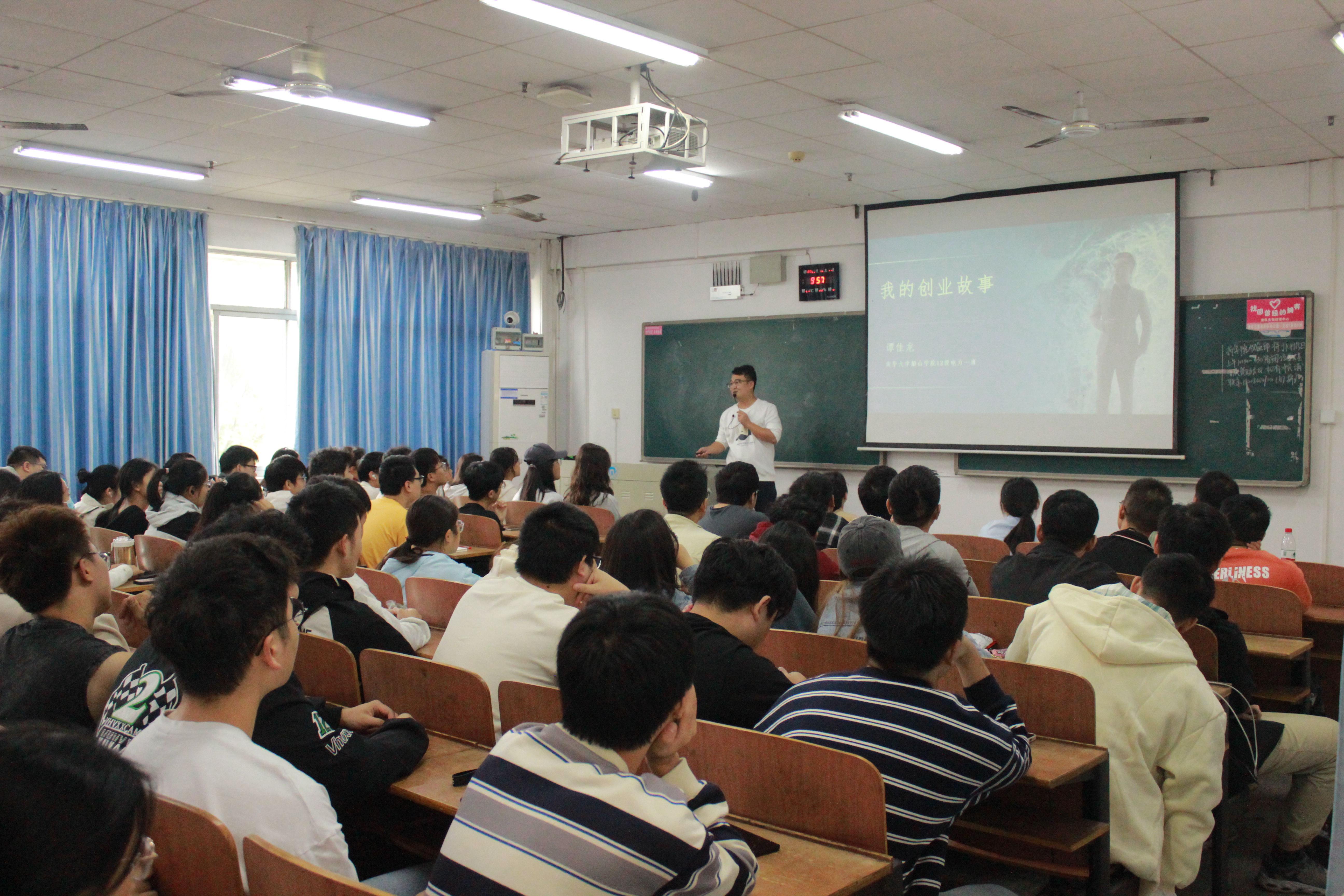值伟德国际victor1946建校65周年校庆之际,10月14日上午,校友谭佳龙以《创业的故事》为题在南华楼209教室作了主题讲座。周英老师主持,电气相关专业同学参与。