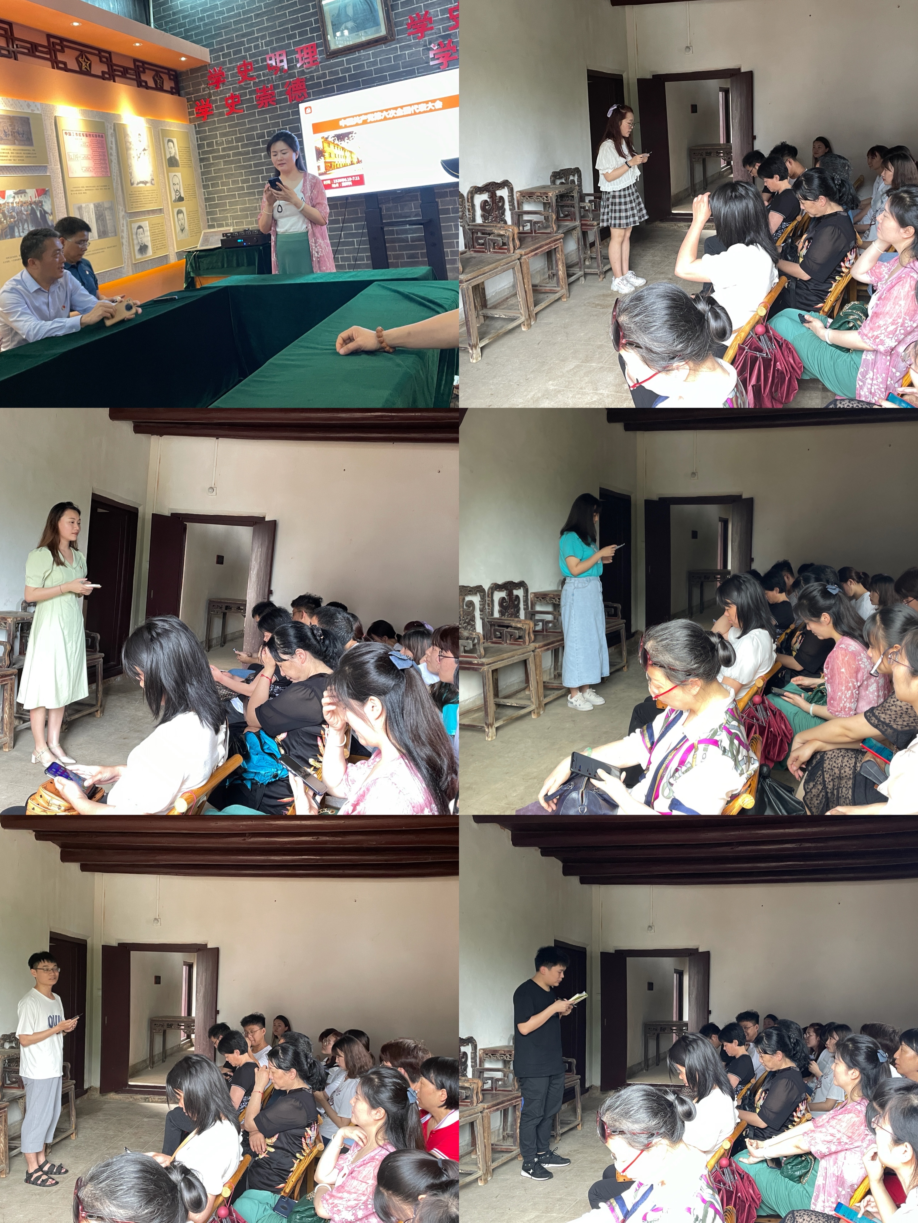 参观期间,袁彦琳等6名教师和学生党员代表分享党史学习的心得体会。袁彦琳老师在发言中讲到:作为高校教师,要传承好红色革命基因,为学生讲好红色故事,在岗位履职尽责上大显身手,在为师生办实事上尽心竭力,在提升自身修养上走在前列。学生党员代表谢涛在分享心得体会讲到:作为一名当代大学生,要在党史学习教育中真正做到学史明理、党史增信、学史崇德、学史力行,应积极响应党组织的号召,从学好这节历史课开始,正确认识党史、站稳政治立场、遵循科学规律、把握发展方向,努力实现“学史以明智,勤思方致远”的目标追求。