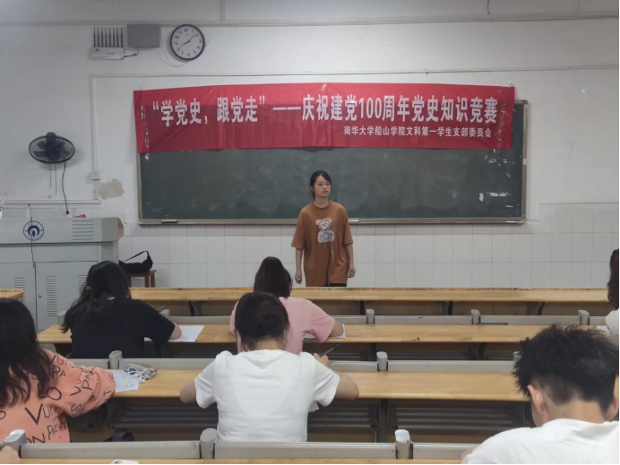 2021年6月15日晚七点,为隆重庆祝中国共产党建党100周年,我院文科第一学生党支部学党史、知党情、跟党走,加深对党的理想信念的认识和理解,在一教315教室举行党史知识竞赛活动。